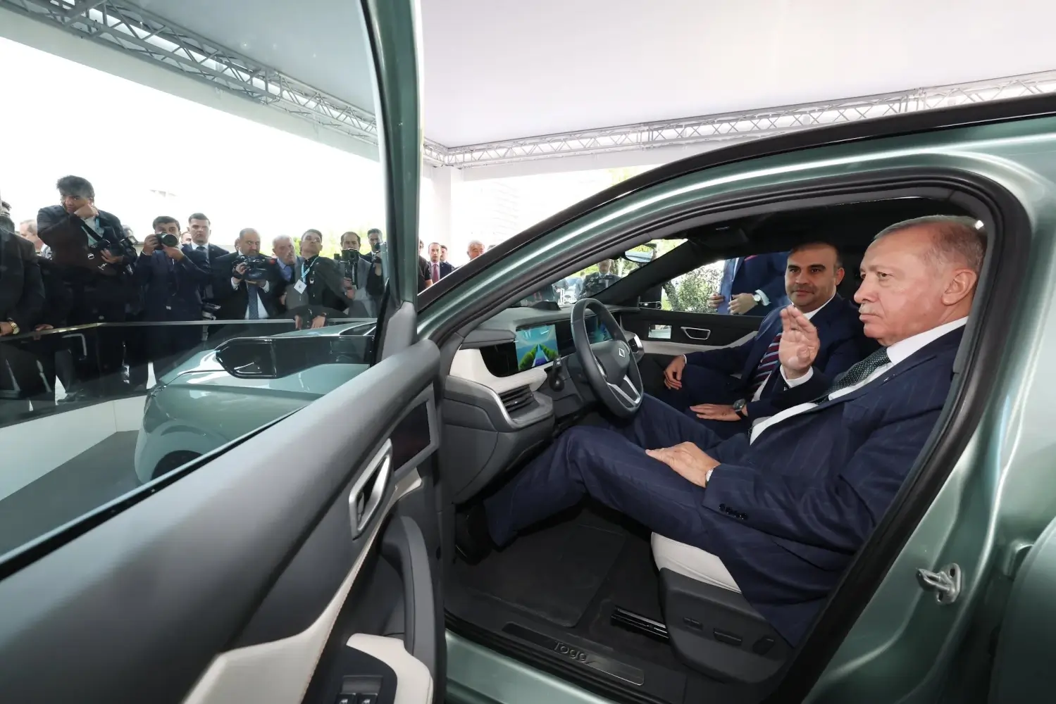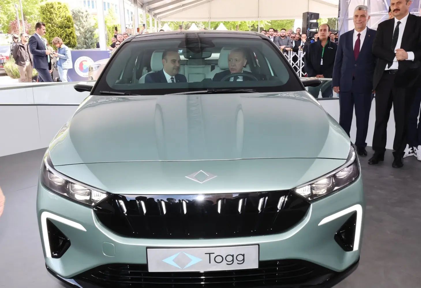 Cumhurbaşkanı Recep Tayyip Erdoğan, Türkiye’nin Otomobili Girişim Grubu (Togg)’un yeni elektrikli otomobili T10F’yi test etti.